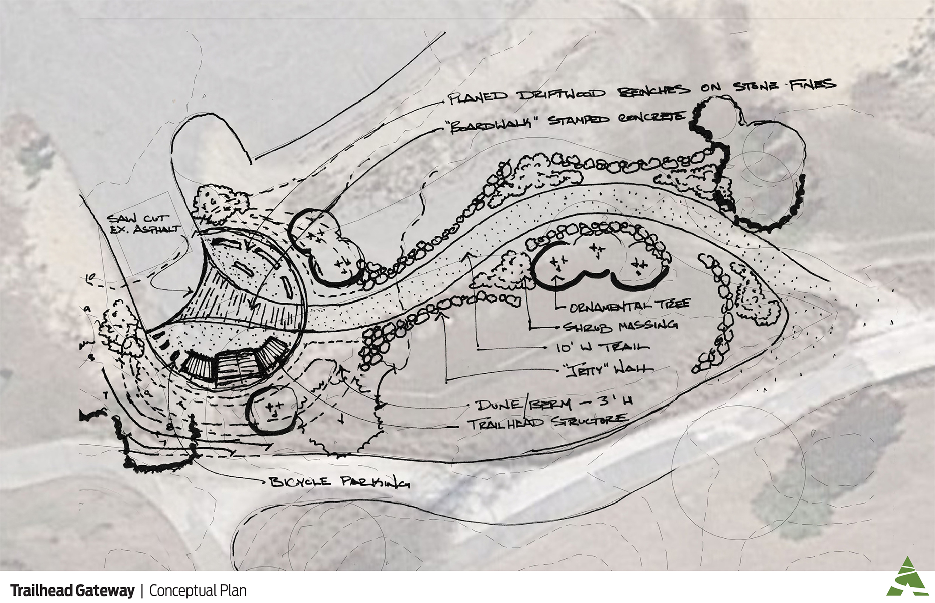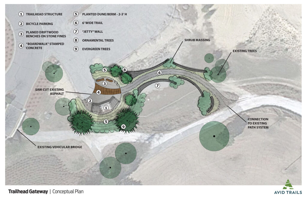 This Bay Creek trailhead kiosk design incorporates natural elements and materials found around the cape.
